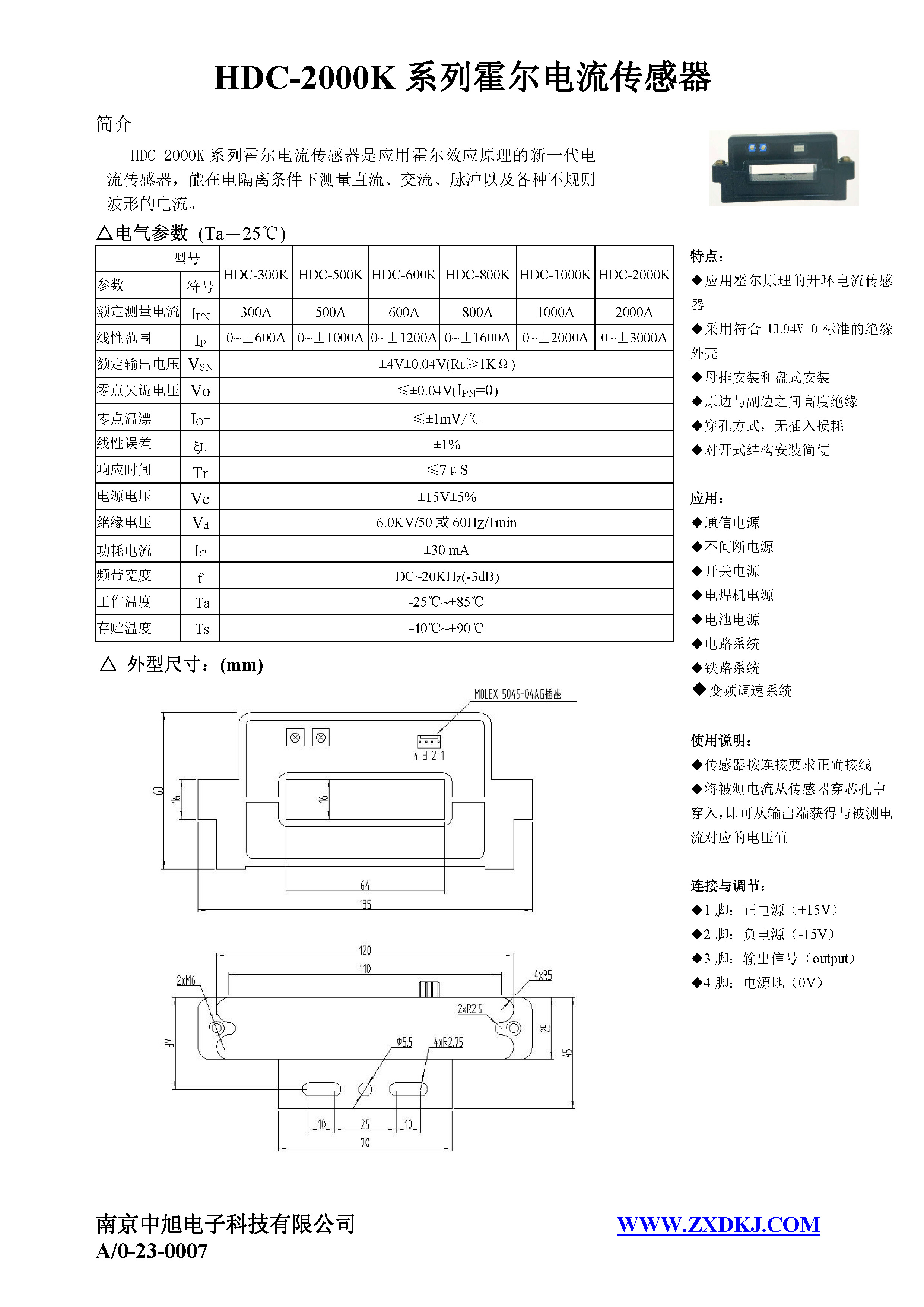 HDC-2000K系列霍爾電流傳感器是應(yīng)用霍爾效應(yīng)原理的新一代電流傳感器,能在電隔離條件下測(cè)量直流、交流、脈沖以及各種不規(guī)則波形的電流。