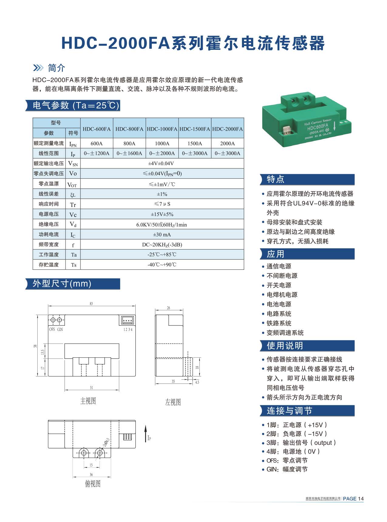 HDC-600FA系列霍爾電流傳感器是應(yīng)用霍爾效應(yīng)原理的新一代電流傳感器,能在電隔離條件下測(cè)量直流、交流、脈沖以及各種不規(guī)則波形的電流。